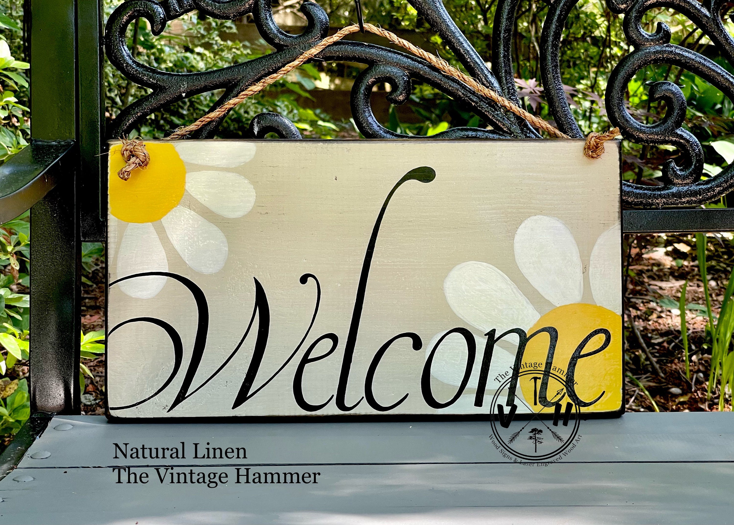 Daisy Flowers Welcome Door Decor Solid Wood Water Resistant Etsy Hand Painted Signs Painted Signs Painted Wood Signs